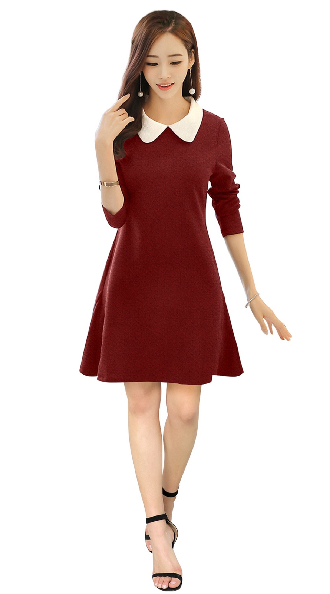 Product Name: Maroon Collared Knee-Length Dress