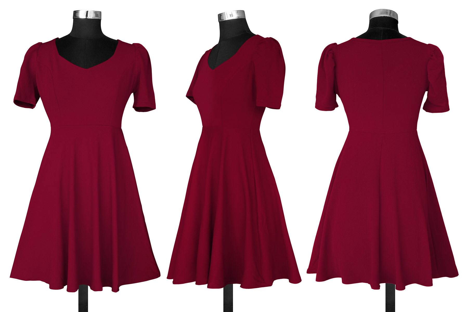 Be the first to review “Maroon V-Neck Cap-Sleeve Fit & Flare Knee-Length Dress”
