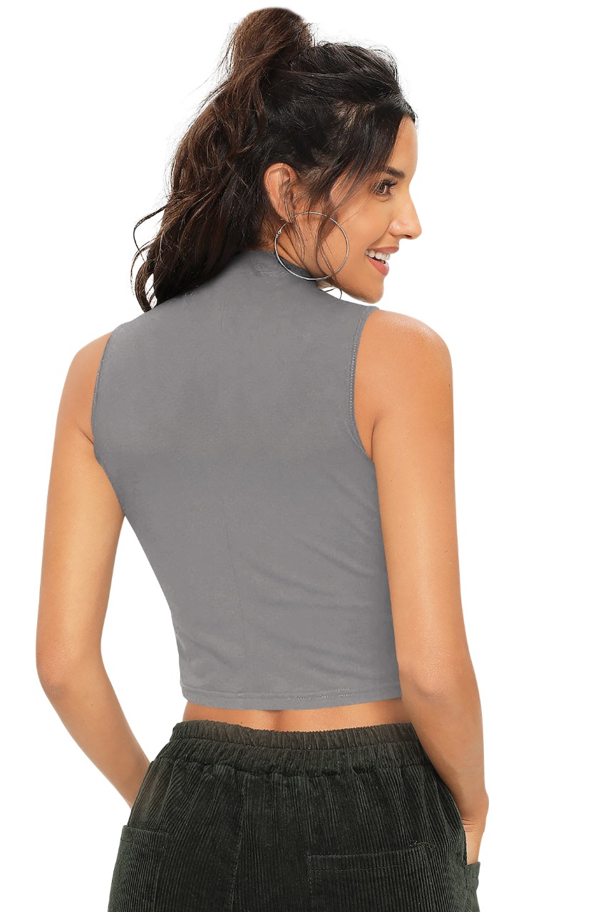 Sleeveless Grey High Neck Top