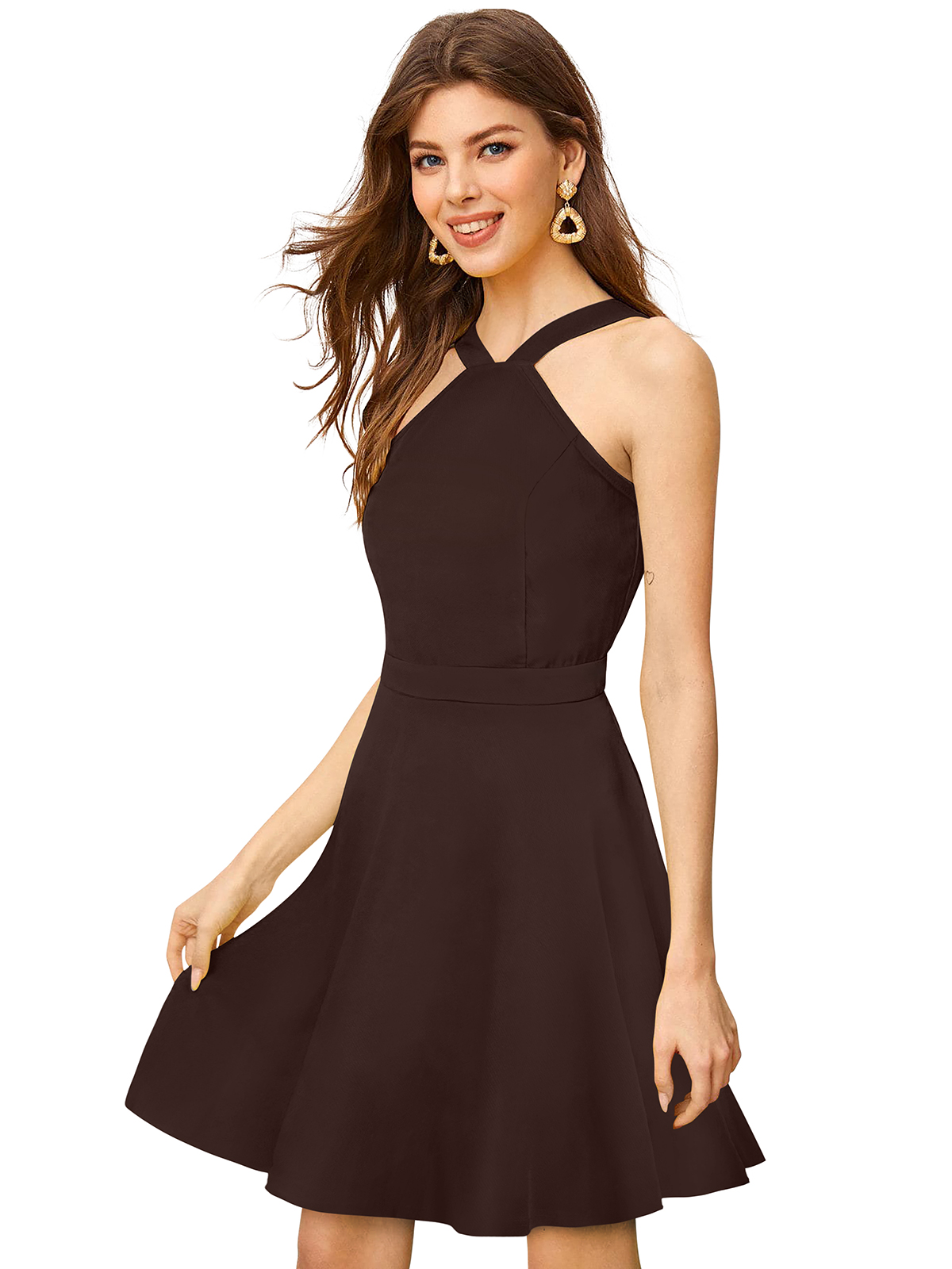 Stretchable Coffee Fit & Flair Dress