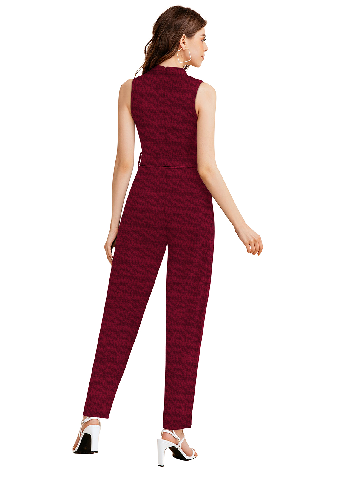 Stretchable Maroon Sleeveless Jumpsuit